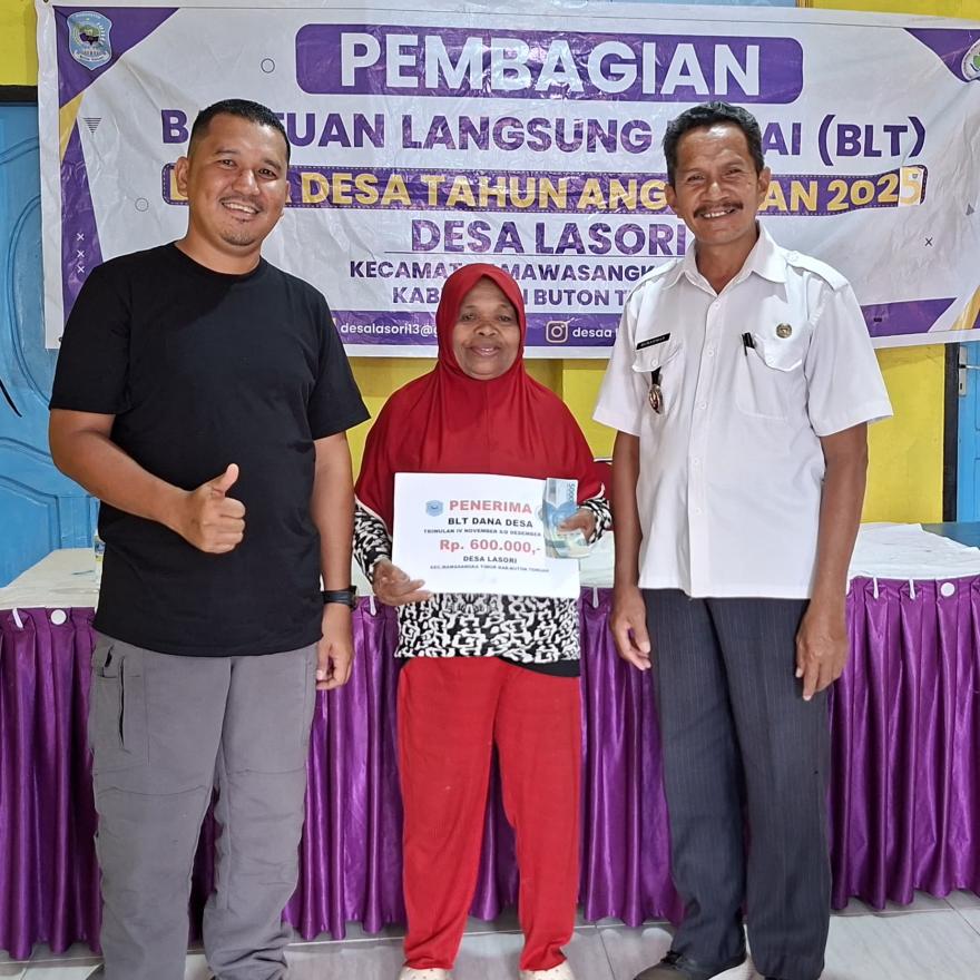 24 Desember 2025 21:17:24 | Desa Lasori | 47 Kali | Berita LokalLasori, 24 Desember 2025 Bantuan Langsung Tunai Dana Desa adalah kegiatan pemberian bantuan langsung berupa dana tunai yang bersumber dari Dana Desa kepada Keluarga Penerima Manfaat (KPM) dan diputuskan melalui Musyawarah Desa sesuai dengan kriteria yang ditetapkan dalam peraturan perundang-undangan. Bantuan ..selengkapnya